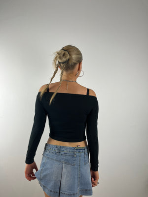 Vintage Black Cold Shoulder Graphic Top (XS)